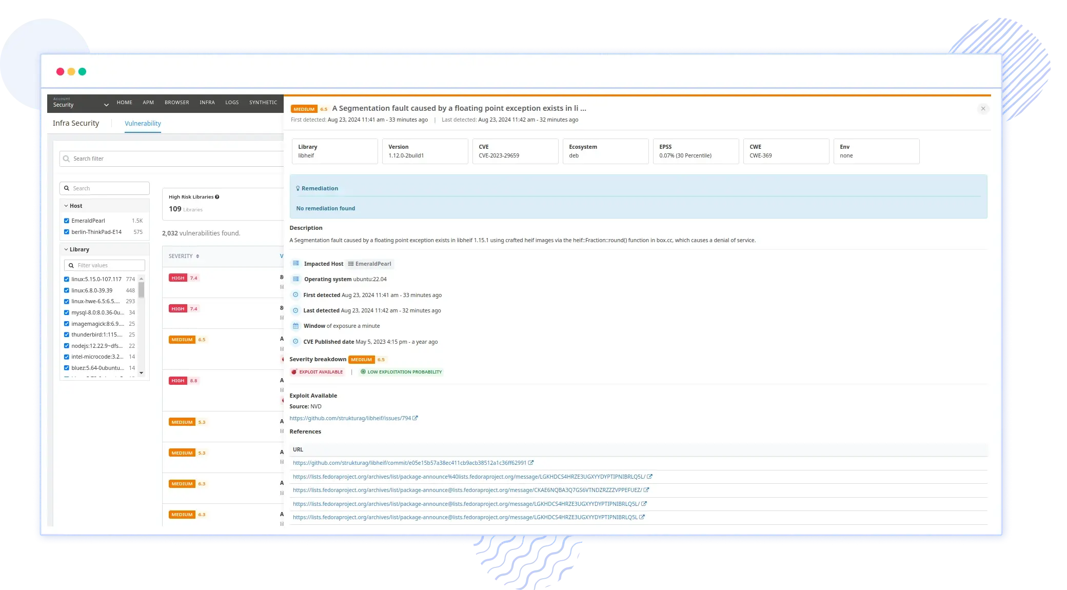 Atatus employs continuous automated scanning and real-time monitoring to identify vulnerabilities across your entire tech stack. Using advanced threat intelligence and integration with CVE databases, Atatus ensures immediate detection of vulnerabilities in applications, infrastructure, and APIs. This proactive approach minimizes the window of exposure and reduces the risk of exploits.