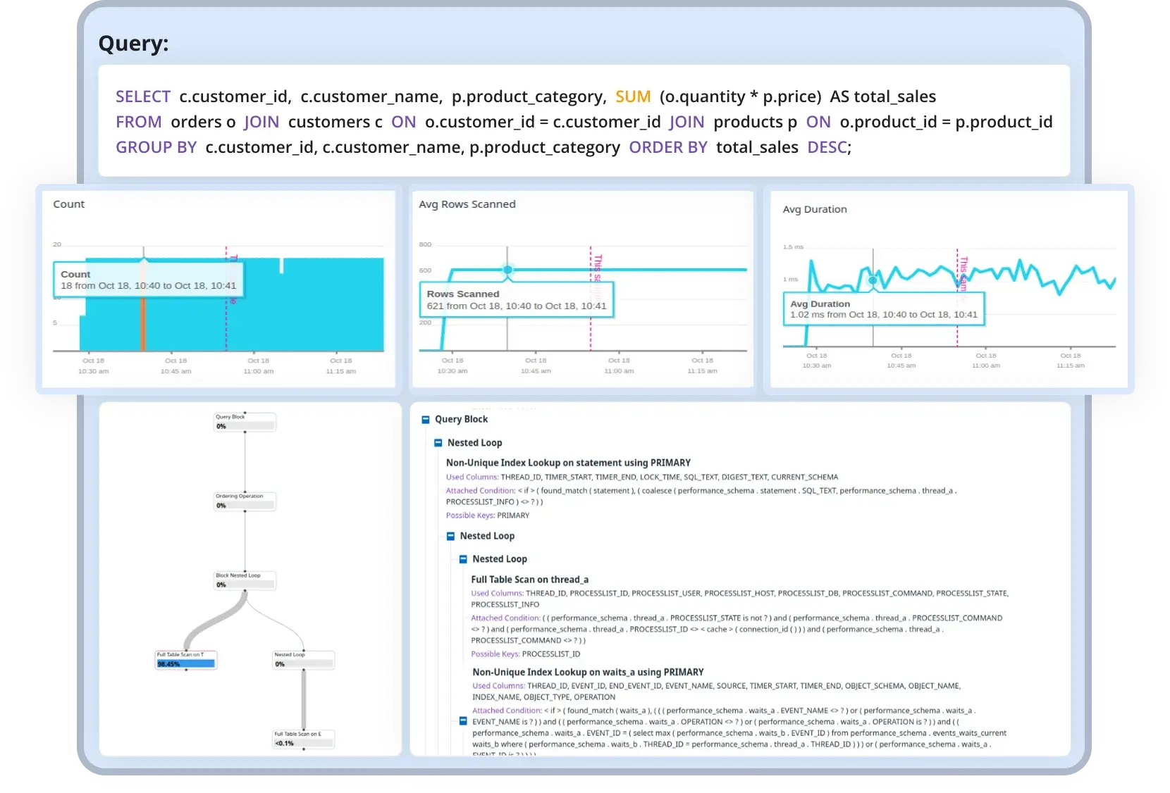 - Data-Driven Insights: Gain detailed insights into query execution, slowdowns, and resource consumption, enabling you to make data-driven decisions that improve system reliability and efficiency.