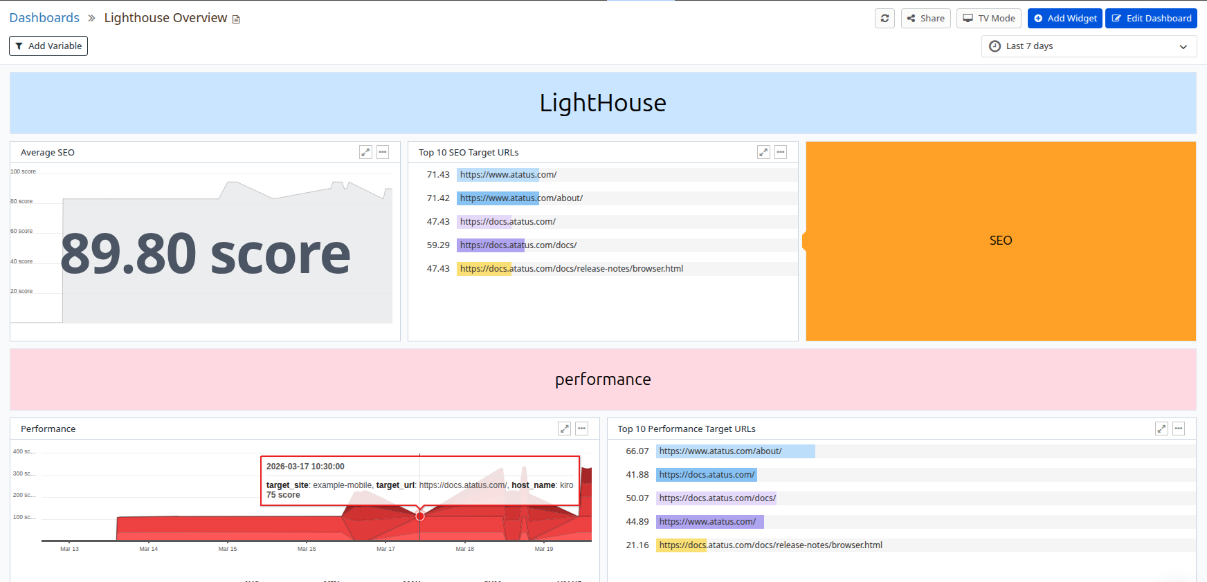 Released on: February 2026Atatus Lighthouse Monitoring automates Google Lighthouse audits across your web pages, continuously tracking performance scores, accessibility compliance, SEO health, and best practices adherence. Stay on top of web quality metrics without manual testing.